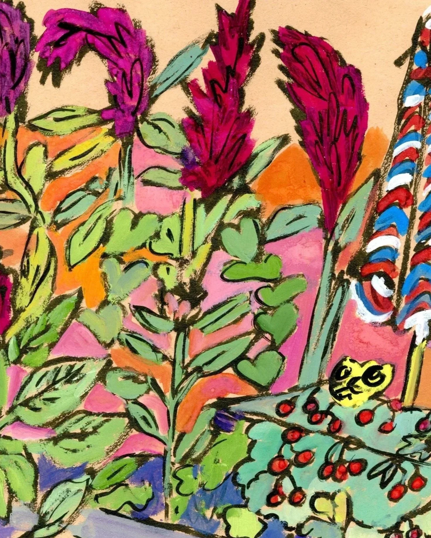 Her diverse portfolio of concepts and collections are spelled out in watercolor with ink, gouache, silk painting, brush pen, pencil, and linoleum block printing.